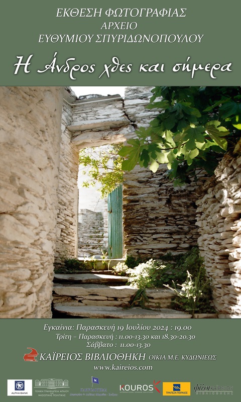 Στην φωτογραφική έκθεση της Καϊρείου Βιβλιοθήκης, που εγκαινιάσθηκε την Παρασκευή 19 Ιουλίου στις 19:00, με αναφορά στο έργο του φωτογράφου Μάκη Σπυριδονόπουλου, προσήλθαν πολλοί καλοκαιρινοί κάτοικοι της αστικής Άνδρου. Ένας κύκλος ανθρώπων που με τον τρόπο τους και την παρουσία τους σηματοδότησαν μια εποχή που η Άνδρος είχε αστικό περίβλημα, το οποίο όμως με τα… Continue reading ΚΑΪΡΕΙΟΣ ΒΙΒΛΙΟΘΗΚΗ: Φωτογραφίες μνήμης και απεικονίσεις του σήμερα…