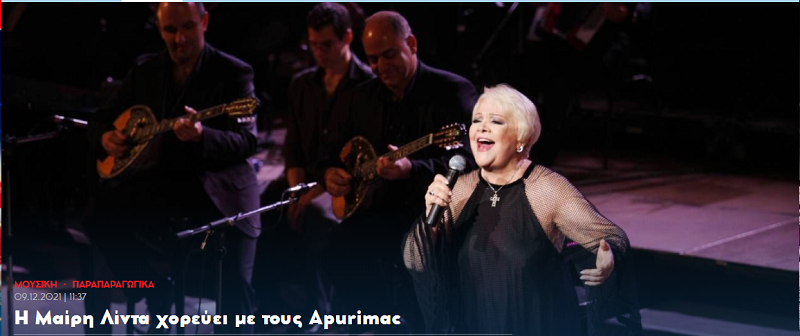 Γράφει ο Άγγελος Σφακιανάκης (Χριστούγεννα ενόψει, καιρός για μνήμες και ιστορίες. O Άγγελος Σφακιανάκης από τα Ρέματα της Άνδρου θυμάται και γραφεί για την Μαίρη Λίντα. Και η Μαίρη Λίντα θυμάται και αφηγείται για τον Χιώτη, τον Μίκη Θεοδωράκη, τον Μάνο Χατζιδάκι, αλλά και τους Αpurimac στο Ηρώδειο του 2013. Ταξιδέψτε χρονιάρες μέρες στο… Continue reading Η Μαίρη Λίντα χορεύει με τους Apurimac