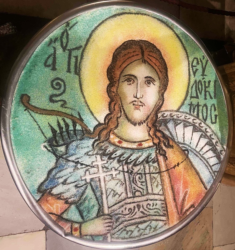 Κι όμως δεν είναι ψηφιδωτό κανονικό. Είναι ψηφιδωτό με κόλλυβα. Ή, μάλλον με υλικά από τα οποία φτιάχνονται τα κόλλυβα. Είναι ένα μικρό έργο τέχνης. Μοναδικό και εφήμερο. Είναι μια μοναδική χειροποίητη κατασκευή από έναν καλλιτέχνη μοναχό…