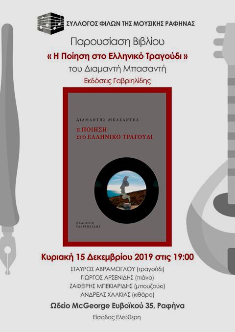 ΔΕΛΤΙΟ ΤΥΠΟΥ Παρουσίαση από τον Σύλλογο Φίλων της Μουσικής Ραφήνας της μελέτης του Διαμαντή Μπασαντή (Εκδόσεις Γαβριηλίδης). Η παρουσίαση θα πλαισιωθεί με μουσική και τραγούδια και αποσπάσματα από μελοποιημένα ποιήματα. Αναλυτικά: