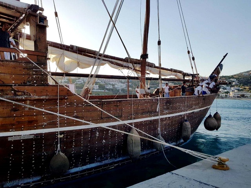 Αργά χτες το απόγευμα (Κυριακή 4/8) ένα 40μετρο παραδοσιακό ξύλινο σκάφος, από το Κατάρ, προερχόμενο από μια εντυπωσιακή διαδρομή (Κωνσταντινούπολη-Θεσσαλονίκη-Μύκονο) έπιασε στο Μπατσί λόγω καιρού. Το σκάφος συνεχίζει σήμερα το πρωί (Δευτέρα 5/8) για Πειραιά.