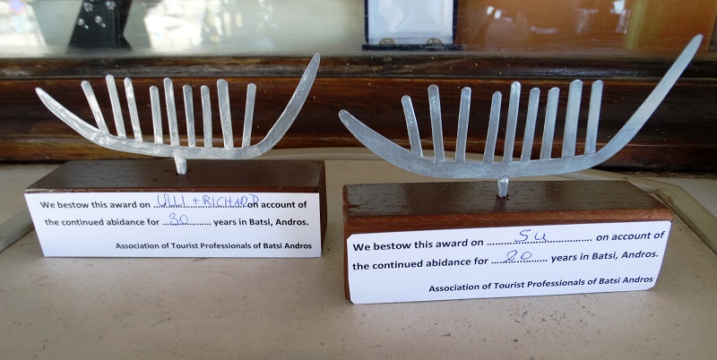 Πρώτη έκπληξη: τα βραβεία των τουριστών που έρχονται στο Μπατσί επί 20 χρόνια συνεχώς τα εμπνεύστηκε ο χρυσοχόος και πρόεδρος του Σωματείου Επαγγελματιών Μπατσίου Ευτύχης Τσιβουράκης από το σήμα του Εν Άνδρω. Μάς ευχαρίστησε για την ίδέα που εισάγαμε στο νησί πριν πέντε χρόνια. Απαντήσαμε πως ήταν δική μας ευχαρίστηση κάτι που κανείς ποτέ πριν δεν αξιοποίησε… Continue reading ΜΠΑΤΣΙ: Βραβεύσεις σε τουρίστες που έρχονται συνεχώς επί 20 χρόνια στην Άνδρο!..