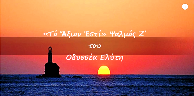 Το σπουδαίο ποίημα ΑΞΙΟΝ ΕΣΤΙ του Οδυσσέα Ελύτη ενέπνευσε πολλούς. Αρχικά τον μεγάλο έλληνα μουσικό Μίκη Θεοδωράκη, που άπλωσε την Ελλάδα στον κόσμο. Και πριν λίγα χρόνια τον καταξιωμένο διεθνώς έλληνα συνθέτη Βαγγέλη Παπαθανασίου, που ταξίδεψε μουσικά σε όλο τον κόσμο.