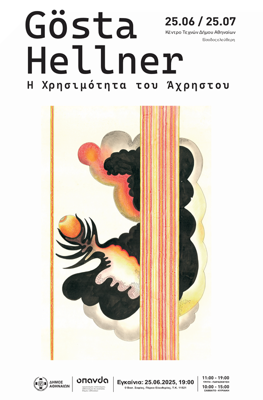ΕΚΘΕΣΗ ΤΟΥ ΔΗΜΟΥ ΑΘΗΝΑΙΩΝ ΑΦΙΕΡΩΜΕΝΗ ΣΤΟ ΕΡΓΟ ΤΟΥ ΓΚΕΣΤΑ ΧΕΛΝΕΡ Εκθεση Gösta Hellner: Η ΧΡΗΣΙΜΟΤΗΤΑ ΤΟΥ ΑΧΡΗΣΤΟΥ -Εγκαίνια έκθεσης: 25/6/2025, ώρα 19:00 – Κέντρο Τεχνών Δήμου Αθηναίων Βας. Σοφίας, Πάρκο Ελευθερίας (στάση Μετρό Μέγαρο Μουσικής) www.opanda.gr – Διάρκεια έκθεσης: 25/6/25-25/7/25 – Επιμέλεια έκθεσης: Άννα Πετροπούλου, Μυρτιά Hellner – Είσοδος ελεύθερη