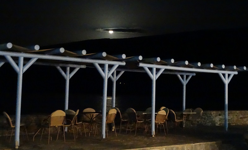 Δεν σταματά να μάς εκπλήττει αυτό το νησί. Βράδυ πρωτομαγιάς. Το φεγγάρι στη χάση του. Η κίνηση περιορισμένη στους δρόμους. Οι πιο πολλοί φευγάτοι για να προλάβουν τις δουλειές τους την επόμενη μέρα. Μια νυχτερινή διαδρομή μέχρι το Κόρθι. Στην παραλία η θαλάσσια άρμη πλημμύρίζει τις αισθήσεις (φωτ. Εν Άνδρω).