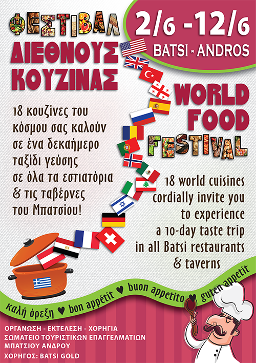 Ένα πρωτότυπο και πρωτοποριακό «φεστιβάλ» διοργανώνει φέτος το Μπατσι και καλεί όλους τους φίλους της Άνδρου, να δοκιμάσουν και να απολαύσουν αυθεντικές συνταγές, με γεύσεις και αρώματα από 18 χώρες.