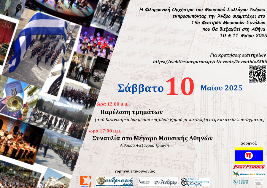 Η αφίσα για το Φεστιβάλ Μουσικών Συνόλων στην Αθήνα Αγαπητέ Διαμαντή, καλημέρα και καλή εβδομάδα! Με χαρά ανακοινώνουμε τη συμμετοχή της Φιλαρμονικής Ορχήστρας του Μου.Σ.Α στο 19ο Φεστιβάλ Μουσικών Συνόλων που θα διεξαχθεί στην Αθήνα 10 -11 Μαΐου. Παρακάτω επισυνάπτω το σχετικό Δελτίο ΤΥΠΟΥ καθώς και την web αφίσα. Θα ήταν μεγάλη μας τιμή να το συμπεριλάβετε στην σελίδα σας.