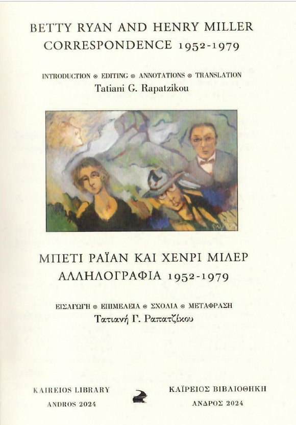 Το βιβλίο της αλληλογραφίας της Μπέτι Ράιαν με τον Χένρι Μίλερ της Καϊρείου Βιβλιοθήκης που θα βραβευτεί από την Ακαδημία Αθηνών την Πέμπτη 19/12/24.