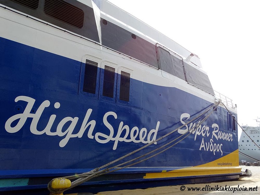 Το ταχύπλοο της Golden Star Ferries φέρει πλέον ευδιάκριτα το όνομα ΑΝΔΡΟΣ κάτω από το όνομα του αφού τελικά άλλαξε λιμάνι νηολόγησης. Το νέο ανδριώτικης αναφοράς πλοίο, φοράει σιγά-σιγά «τα καλά του» για να ξανοιχθεί σε λίγο καιρό στο Αιγαίο.