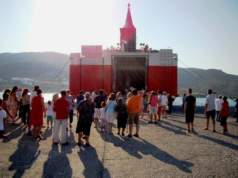 Αναχώρηση από το Γαύριο. Το λιμάνι, αρχή το τέλος κάθε ταξιδιού για την Άνδρο… Η Άνδρος αδειάζει. Από το Σάββατο 22/8 μέχρι και την Δευτέρα 24/8 όλα τα πλοία διερχόμενα και τοπικά προς Ραφήνα είναι φίσκα! Αναχωρούν από το νησί το τριήμερο από Σάββατο μέχρι και Δευτέρα γύρω στα 2100-2300 αυτοκίνητα και 7000 επισκέπτες!