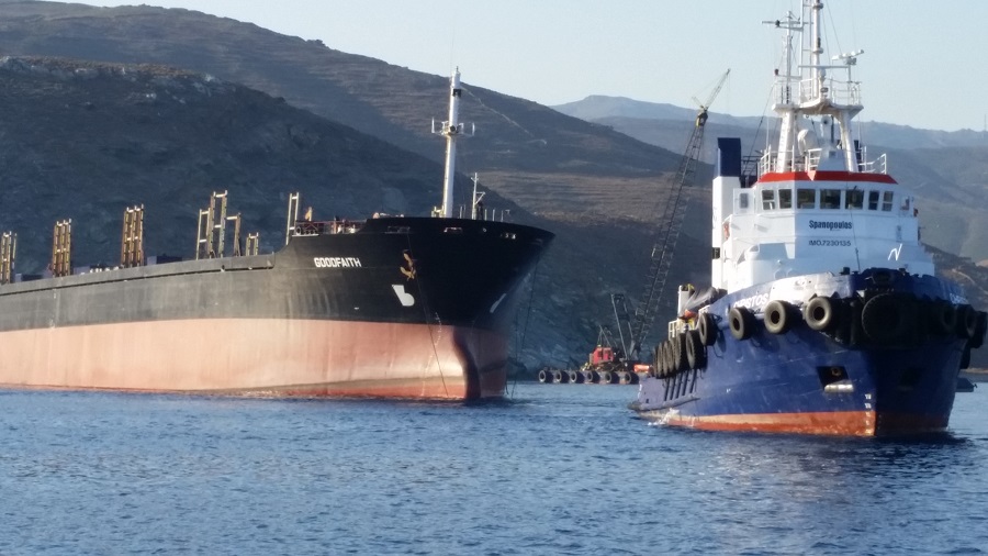 Το πλοίο έχει αποκολήθεί και ρυμουλκείται στα άνοιχτά… Χτες Παρασκευή 10-7-2015 στις 8.00 το πρωί το πλοίο Goodfaith, κυπριακών συμφερόντων, απομακρύνθηκε από την παραλία Μικρά Πέζα μετά από συνδυασμένη επιχείρηση. Η επιχείρηση ξεκίνησε το μεσημέρι της Πέμπτης και διήρκεσε 19 ώρες. Στην επιχείρηση έλαβαν μέρος 2 ρυμουλκά, ένας πλωτός γερανός, ένα σκάφος αντιρρύπανσης, ένα σκάφος… Continue reading Goodfaith: απομακρύνθηκε το άτυχο σκαρί από την Άνδρο