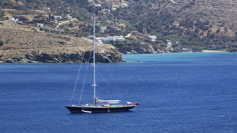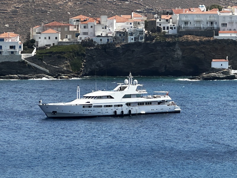 Η Χώρα δεν είναι συνηθισμένη να έχει τακτικές επισκέψεις γιώτ. Συνήθως όσα έρχονται είναι παραδοσιακών πλοιοκτητών της Άνδρου. Κι έρχονται στα μέσα του καλοκαιριού. Έτσι το γιωτ Αχιλλέας μήκους 53 μέτρων, που αγκυροβόλησε στη μέση του Νειμποριού προερχόμενο από την Σχοινούσα, έκανε εντύπωση στο νεαρό αναγνώστη μας, που άρχισε να το φωτογραφίζει από διάφορες αποστάσεις…
