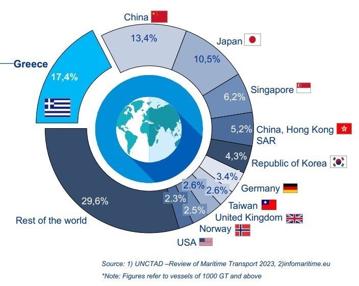 Του ΜΗΝΑ ΤΣΑΜΟΠΟΥΛΟΥ ΑΝΑΔΗΜΟΣΙΕΥΣΗ – NEWMONEY Η Ελλάδα κατέχει την 1η θέση παγκοσμίως στην ιδιοκτησία εμπορευματικών πλοίων, παρουσιάζοντας αύξηση 17,8% στην ιδιόκτητη χωρητικότητα την τελευταία πενταετία. Το μέσο μέγεθος των πλοίων της χώρας είναι σχεδόν διπλάσιο σε σύγκριση με τον παγκόσμιο μέσο όρο των 39 χιλιάδων τόνων, γεγονός που δείχνει ότι οι Έλληνες πλοιοκτήτες είναι ως επί το πλείστον… Continue reading Πρώτοι στον κόσμο: Οι κορυφαίοι Έλληνες εφοπλιστές και εφοπλίστριες το 2024