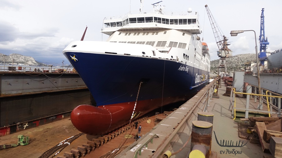 Στην τελική ευθεία μπήκε η μετασκευή του συμβατικού πλοίου “Andros King” των αδελφών Στεφάνου. Ήδη βρίσκεται στην πλωτή δεξαμενή του Περάματος για εργασίες καθαρισμού και βαφής στα ύφαλα του σκάφους.