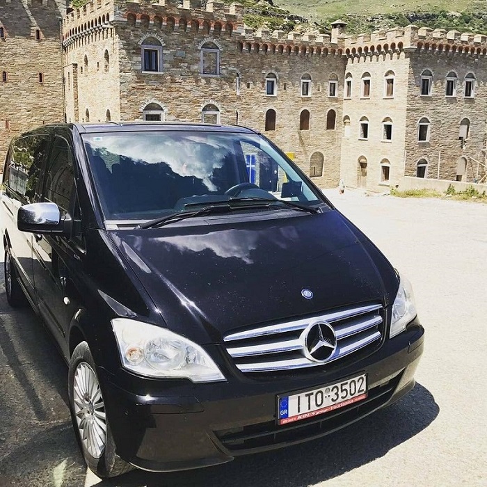 Ένα τουριστικό πουλμανάκι σαν αυτό της φωτογραφίας μπροστά στο μοναστήρι της Αγίας Μαρίνας (του Φ. Γαλαίου) μπορούν να βγάλουν ως ταξί στο Νότιο Αιγαίο σύμφωνα με τη νέα διάταξη της Περιφέρειας. Αυξάνεται η χωρητικότητα, η εξυπηρέτηση και οι δυνατότητες μεταφοράς των ταξί στις καλοκαιρινές Κυκλάδες.