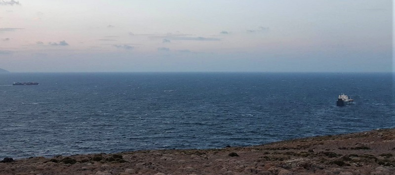 Φωτογραφία του πλοίου από την Άνδρο ανοικτά στον Καμπανό Το ακυβέρνητο πλοίο που υπέστη μηχανική βλάβη βορείως της Άνδρου και κινδύνεψε να πέσει στο νησί κατάφερε με βοήθεια να πλησιάσει την ακτή του νησιού και αγκυροβόλησε στην περιοχή του Καμπανού αργά το απόγευμα της 29ης Σεπτεμβρίου.