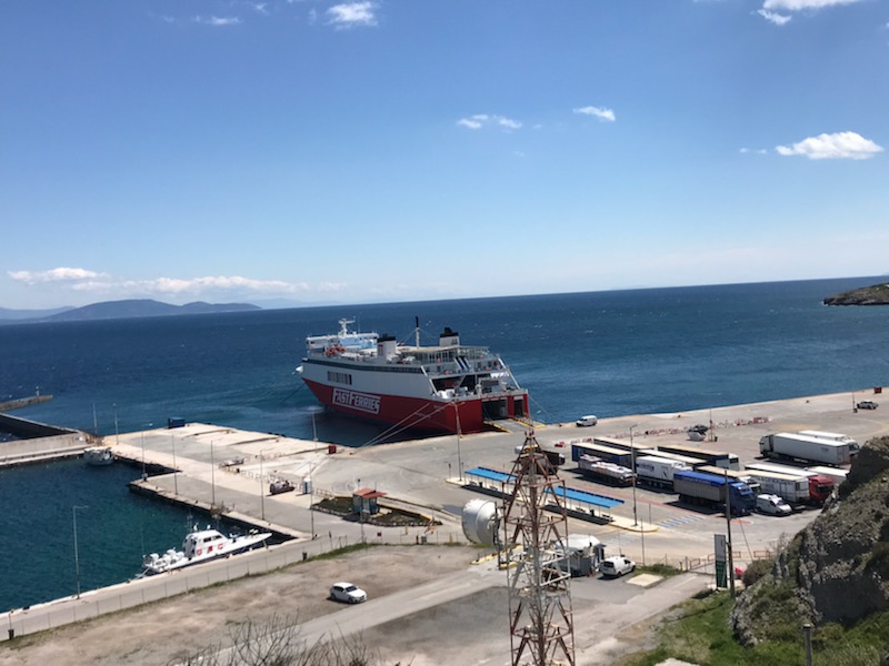 Η εικόνα του λιμανιού της Ραφήνας την Τετάρτη το απόγευμα μετά την άφιξη του Θεολόγου. Πλήρης ερημιά. Μόνο τα επόμενα φορτηγά στην αναμονή του δρομολογίου της επομένης. Χωρίς επιδότηση της γραμμής ούτε ο Θεολόγος θα αντέξει για πολύ. Φωτογραφία συνεργάτη του Εν Άνδρω.