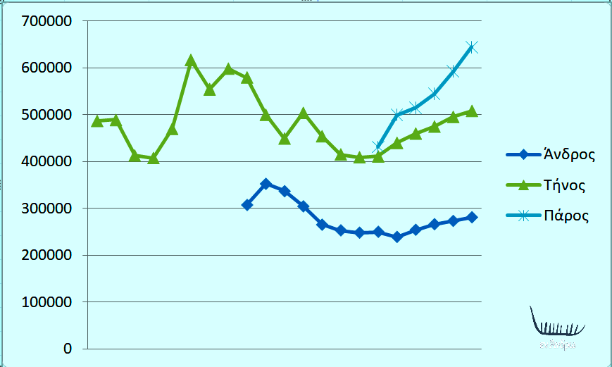 Ετήσιες αφίξεις επιβατών σε Άνδρο, Τήνο, Πάρο. Σε Άνδρο από το 2007 μέχρι το 2019. Σε Τήνος από το 1999 μέχρι το 2019. Και σε Πάρο από το 2014 μέχρι το 2019. Στοιχεία λιμεναρχεία νησιών. Επεξεργασία Εν Άνδρω. Θα επιχειρήσουμε μια συγκριτική ανάλυση της τουριστικής κίνησης με αναφορά στις αφίξεις για Άνδρο, Τήνο, Πάρο, την… Continue reading Η κρίση στον τουρισμό, τα δρομολόγια, οι αφίξεις και η Άνδρος…