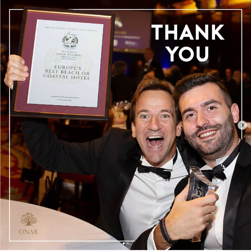 Μάκης Παντζόπουλος, Θοδωρής Μισόκαλος / Φωτογραφία: Instagram ΑΝΑΔΗΜΟΣΙΕΥΣΗ Το πρώτο βραβείο ως το καλύτερο παραλιακό ξενοδοχείο στην Ευρώπη κέρδισε το Όναρ των Πατζόπουλου-Μενεγάκη στην Άνδρο. Και ο Μάκης το πανηγύρισε στο Instagram. Ο αγαπημένος της Ελένης Μενεγάκη, το απόγευμα της Πέμπτης ανέβασε στον προσωπικό του λογαριασμό δύο φωτογραφίες: στη μία το βραβείο, ενώ στην άλλη τον… Continue reading Tο ξενοδοχείο Όναρ των Πατζόπουλου-Μενεγάκη στην Άνδρο το καλύτερο παραλιακό της Ευρώπης!!!