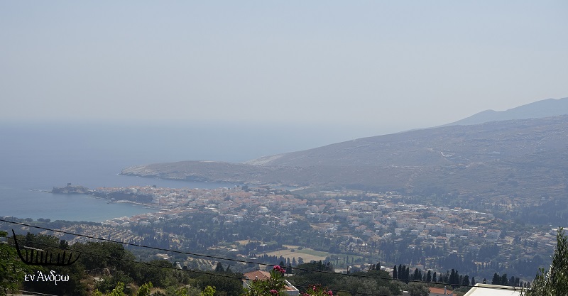 Άνδρος, Κυριακή, 24 Ιουλίου 2022, ώρα 12:15 το μεσημέρι. Μια βαριά μυρωδιά καπνού στον αέρα. Και μια κάπνα θαμπώνει σαν σε ομίχλη την κοιλάδα της Χώρας. Η κάπνα από τις μεγάλες φωτιές του Έβρου ή της Λέσβου απλώνει παντού σβήνοντας τον εκτυφλωτικό ήλιο και θαμπώνοντας την Χώρα και τον ορίζοντα της θάλασσας.