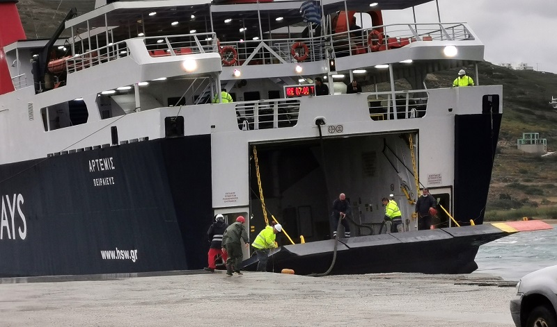 ΓΑΥΡΙΟ: Έχει αρχίσει η επιβίβαση με την θάλασσα να αφρίζει κάτω από τον καταπέλτη και τις ριπές του ανέμου να ξεπερνούν και τα 9 μποφόρ. Ο άνεμος στεριανός. Όμως το πλοίο κρατά στον καιρό και τα 40 ΙΧ και οι 200 επιβάτες επιβιβάζονται σβέλτα…