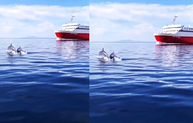 Η θάλασσα λάδι. Ο Γιάννης Στυλιανός από το Γαύριο βγήκε χαράματα για ψάρεμα. Δεν μάθαμε αν πήγε καλά η ψαριά, αλλά μάθαμε πως έζησε μια υπέροχη εμπειρία με τα “ευλογισμένα πλάσματα” όπως μάς έγραψε της θάλασσας: τα δελφίνια. Ένα ζευγάρι βγήκαν βόλτα έξω από το Γαύριο εκεί που απλώνει το μεγάλο πέρασμα του Κάβο Ντόρου.