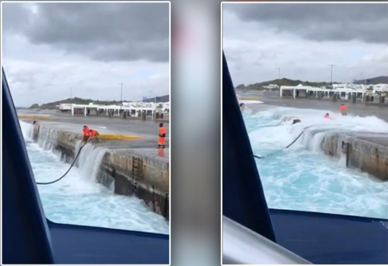 Το κύμα «εξαφανίζει» τους καβοδέτες από το πλάνο, ενώ ο ένας γλιστράει και πέφτει κάτω Μεγάλη μάχη δίνουν σχεδόν καθημερινά μέσα στο χειμώνα τα πλοία, ώστε να προσεγγίσουν τα λιμάνια σε νησιά του Αιγαίου και να δέσουν σε αυτά, λόγω των θυελλωδών ανέμων. Φυσικά, έντονες προσπάθεις – επικίνδυνες σε αρκετές περιπτώσεις και για την ίδια… Continue reading Τεράστιο κύμα παρασύρει τους καβοδέτες στο λιμάνι της Τήνου