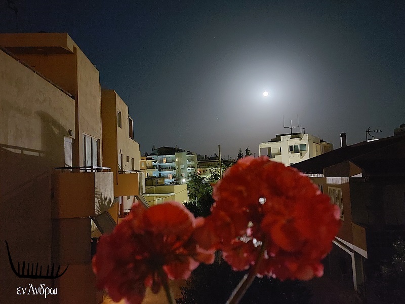 Φίλη αναγνώστρια θέλησε χτες βραδύ με την υπερ-πανσέληνο του Μαΐου να φωτίζει σαν ασημένιος ήλιος τη νύχτα της Ραφήνας να μοιραστεί μαζί μας – και μαζί σας – τη στιγμή της λάμψης από το μπαλκόνι της. Αστικό περιβάλλον. Πολυκατοικίες κλασικές ή μοντέρνες. Και δύο γεράνια στη γλάστρα. Εικόνες μιας πόλης όπως την θυμόμαστε ή όπως… Continue reading ΑΠΟΔΡΑΣΕΙΣ και η υπερ-πανσέληνος των λουλουδιών…
