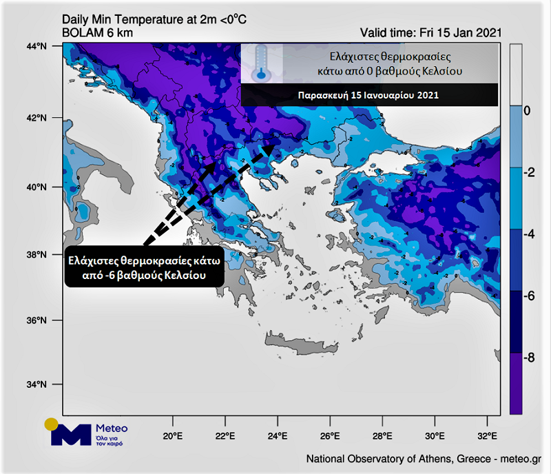 Τα καιρικά φαινόμενα ξεκινούν Κυριακή 29/11 και κορυφώνονται την Τρίτη 1/12. Ο παραπάνω χάρτης είναι για την Τρίτη 1/12.