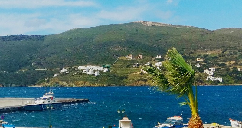 Ισχυρότατοι άνεμοι 9-10 μποφόρ σάρωσαν την Άνδρο από το μεσημέρι της Παρασκευής μέχρι το βράδυ. Στο Γαύριο λύγιζαν τα δέντρα από τις ριπές του αέρα (φωτ. Ν.Π.)