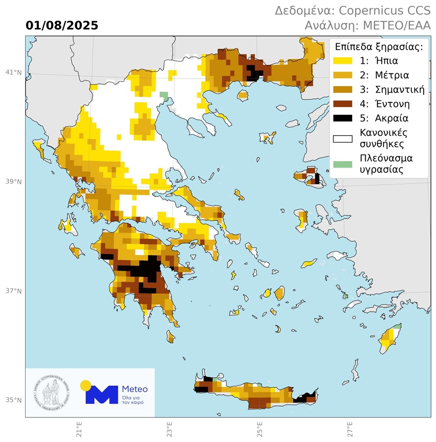 Όπως φαίνεται στον παραπάνω χάρτη ξηρασίας του Εθνικού Αστεροσκοπείου η πιο άνυδρες περιοχές της Άνδρου εντοπίζονται στο Γαύριο και στο Μπατσί.