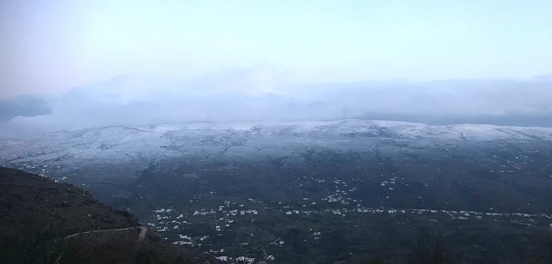 Του Ηλία Νόκα Υδρογεωλόγου Νοτίου Αιγαίου Ανήμερα των Θεοφανείων: χιόνια στο καμπαναριό, χιόνια και στον Πιτροφό!!! (φωτ. Χαρίδημος). (Μετά τις συνεχείς βροχές των τελευταίων ημερών του 2018 και των πρώτων ημερών του 2019 και του πρώτου χιονιού στην Κουβάρα και τώρα και στο Πέταλο, το Εν Άνδρω απευθύνθηκε στον εξαιρετικό επιστήμονα και μοναδικό εξειδιεκευμένο υδρογεωλόγο… Continue reading Χιόνια στο Πέταλο μέχρι τον Πιτροφό. Αγριεύει ο χειμώνας. Πως πάει υδρολογικά η Άνδρος και το Αιγαίο.