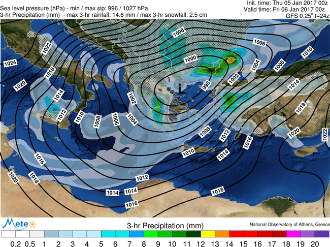 Το πρώτο σύστημα που θα μπει στο Αιγαίο απόψε το βράδυ θα έχει αέρα καο βροχή όπως δείχνει ο παραπάνω χάρτης της ΕΜΥ Νέα σκληρή καιρική δοκιμασία για την Άνδρο από απόψε (Πέμπτη 5 Ιανουαρίου) με διάρκεια τουλάχιστον 5 ημερών. Οι μετεωρολόγοι προειδοποιούν: τα φαινόμενα θα είναι κατά πολύ ισχυρότερα από τις προηγούμενες φορές και… Continue reading Προσοχή έρχεται ένα παγωμένο πενθήμερο: -7 βαθμούς θα φτάσει στην Άνδρο!!!