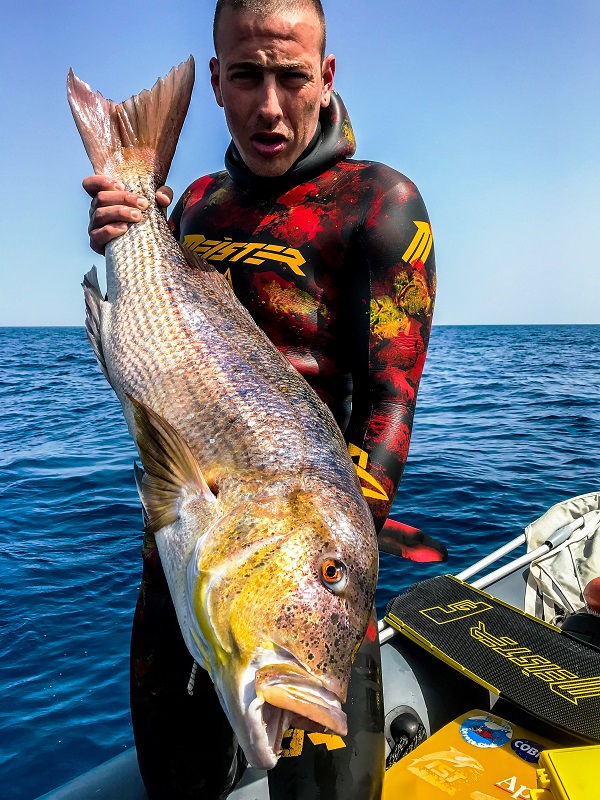Ο Δ. Αδάμης με την τεράστια συναγρίδα στο σκάφος του. Ανδριώτης ερασιτέχνης ψαράς, είναι εδώ και λίγες μέρες ο κάτοχος του παγκόσμιου ρεκόρ, αφού κατάφερε να εντοπίσει σε βάθος 34 μέτρων στη θάλασσα, μια συναγρίδα 12,9 κιλά (!), να την πετύχει με ψαροντούφεκο και να «την φέρει επάνω»!