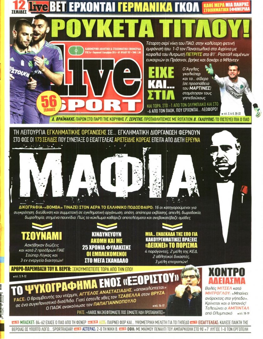 Για όσους δεν ασχολούνται με τον αθλητισμό, η υπόθεση των ποινικών διώξεων για τη λειτουργία εγκληματικής οργάνωσης στο ελληνικό ποδόσφαιρο ίσως και να μην είναι γνωστή. Γι΄ αυτό οφείλουμε να αναφέρουμε πως πριν λίγες μέρες ο αθλητικός εισαγγελέας κ. Κορέας άσκησε ποινικές διώξεις σε 16 πρόσωπα του ποδοσφαίρου, με την κατηγορία της συγκρότησης, διεύθυνσης και… Continue reading Μαφία στο ποδόσφαιρο
