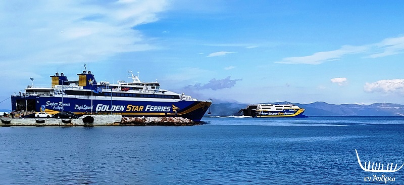 Τα πλοία της Golden Star και της Fast Ferries στο Γαύριο (φωτ. αρχείου Εν Άνδρω). Επαρχείο Άνδρου Άνδρος, 18 Ιανουαρίου 2020