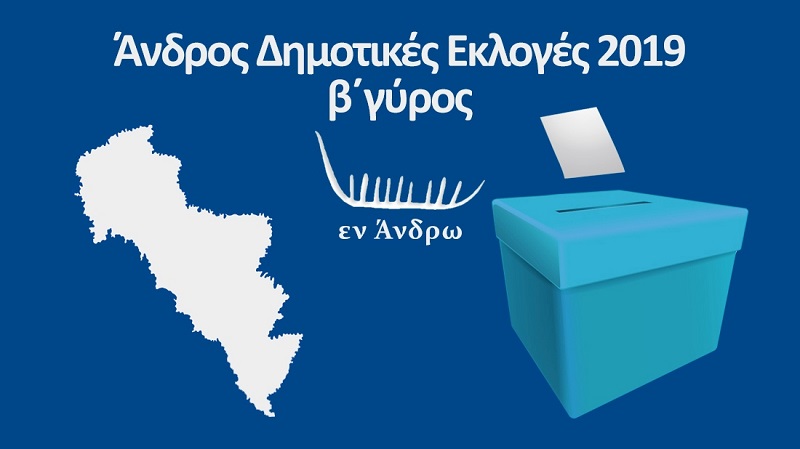 Τελικά αποτελέσματα Δήμου Άνδρου 2019 Β’ Κυριακή Τελευταία ενημέρωση: 2/6/2019, 22:27 Ενσωμάτωση: 100,00 (36 / 36 ΕΤ), Εγγεγραμμένοι: 12.650, Έγκυρα: 4.912, Άκυρα: 88, Συμμετοχή: 5.072, Λευκά: 72 Λοτσάρης Δημήτριος Μαζί για την Ανδρο 50,92 % 2.501 ψήφοι Σουσούδης Θεοδόσιος ΑΝΔΡΟΣ ΝΕΟΙ ΟΡΙΖΟΝΤΕΣ 49,08 % 2.411 ψήφοι ΠΡΩΤΑ ΑΠΟΤΕΛΕΣΜΑΤΑ ΠΕΡΙΜΕΝΟΥΜΕ ΜΕΤΑ… Continue reading ΑΠΟΤΕΛΕΣΜΑΤΑ Β’ ΓΥΡΟΥ ΔΗΜΟΤΙΚΩΝ ΕΚΛΟΓΩΝ ΑΝΔΡΟΥ – ΔΗΜΑΡΧΟΣ ΑΝΔΡΟΥ ΕΞΕΛΕΓΗ Ο ΔΗΜΗΤΡΗΣ ΛΟΤΣΑΡΗΣ