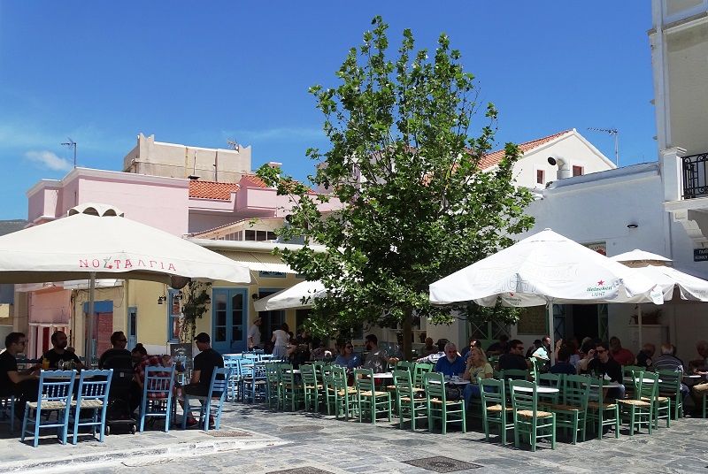 Πλάτανος. Πλατεία Καΐρη. Μεσημέρι 1/6/19. (φωτ. Εν Άνδρω). Εμφανής η πτώση των μετακινούμενων ετεροδημοτών προς Άνδρο. Στο νησί έφτασαν μέχρι το Σάββατο το πρωί 2259 επιβάτες και 341 ΙΧ. Το προηγούμενο Σαββατοκύριακο είχαν έρθει 2633 επιβάτες και 532 ΙΧ.