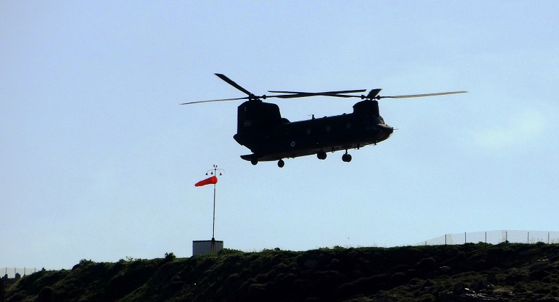 Στις 09:25 το ελικόπτερ της Πολεμικής Αεροπορίας ήρθε και ζυγίστηκε πάνω από το ελικοδρόμιο της Άνδρου΄΄Έφερνε τον Πρόεδρο της Δημοκρατίας για την μεγάλη θρησκευτική γιορτή της Άνδρου: της Θεοσκεπάστουν (φωτ. Εν Άνδρω).