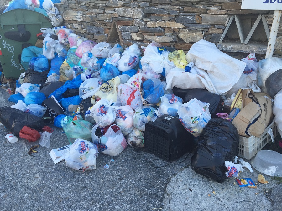 Το τηλέφωνο χτυπά πρωί-πρωί από Χώρα: – — Προς ενημέρωση: βγάλανε μεγάλες μαύρες σακούλες και τα περιμαζεύουνε. Τουλάχιστον να μην είναι χύμα σε όλη την πόλη. Να που κάτι αρχίζει να κινείται. Έστω ακούγωντας μια καλή συμβουλή. Κάτι είναι κι αυτό. Γιατί στη Χώρα υπήρχαν μερικές γωνιές που ήταν πολύ χάλια.