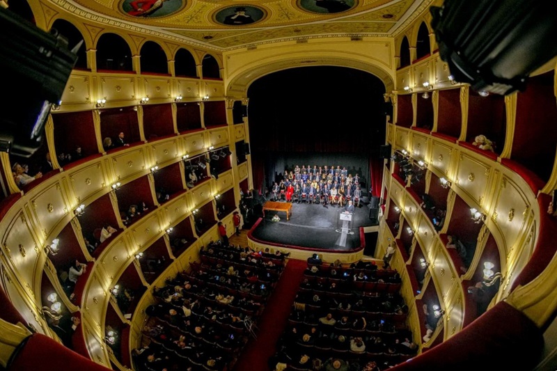 Στιγμιότυπο από την ορκωμοσία της Περιφερειακής Αρχής στο θέατρο Απόλλων της Σύρου το 2019. Τότε έγινε πρωί λόγω καλοκαιριού. Τώρα γίνεται απόγευμα λόγω χειμώνα και απαγορευτικών. Για να προλάβουν να φθάσουν όσοι και όσες έρχονται από μακρινά νησιά ή και μακρινές χώρες…