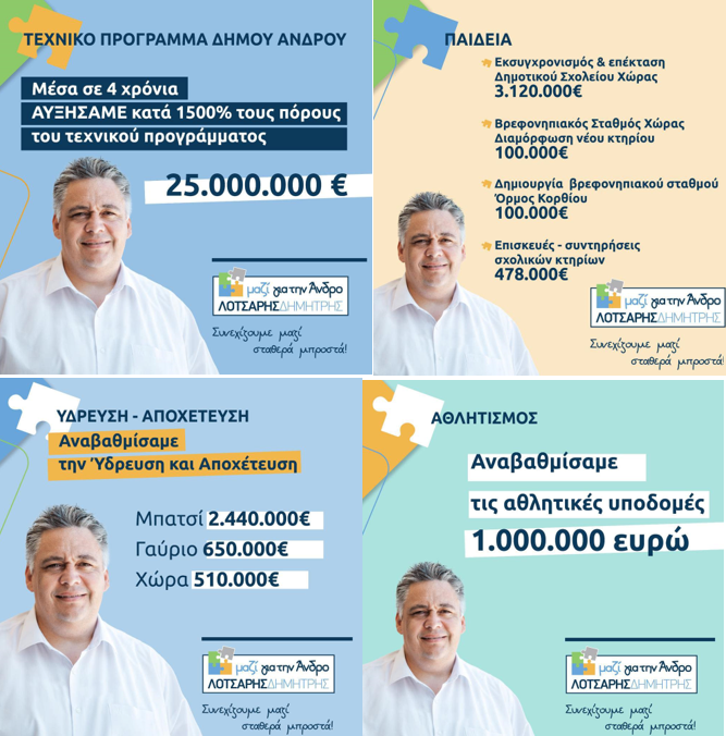 Από το φυλλάδιο απολογισμού έργων του δημάρχου Δημήτρη Λοτσάρη. Περιμένουμε με ενδιαφέρον τον απολογισμό έργων της 5ετίας Σουσούδη για να κρίνουμε… Έχουμε καταγράψει ήδη την ταχύτητα, την οργάνωση και την αποτελεσματικότητα της ομάδας Λοτσάρη στη μέχρι σήμερα διαδρομή του προεκλογικού αγώνα. Ο δήμαρχος και η οργανωτική ομάδα του με επικεφαλής τον Κ. Θωμά και αποτελούμενη… Continue reading ΑΠΛΟΓΙΣΜΟΣ & ΠΡΟΓΡΑΜΜΑΤΙΣΜΟΣ: Έντυπο απολογισμού και ομιλίες Δ. Λότσάρη σε Λειβάδια, Βραχνού και Αθήνα. Κι ένας πολιτικός σχολιασμός της επικαιρότητας…