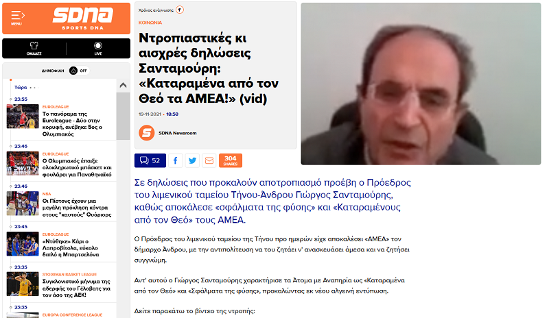 Το Λιμενικό Ταμείο Τήνου – Άνδρου Με την κοινή γνώμη της Ελλάδας να παρακολουθεί άναυδη και την κοινωνία της Τήνου εξοργισμένη να μην πιστεύει στα όσα βλέπει, ακούει και διαβάζει στα ΜΜΕ όλης της χώρας – έναν ασταμάτητο κατήφορο δηλώσεων Σανταμούρη για τα ΑΜΕΑ. Βασική πηγή αναφοράς των εξελίξεων εδώ και 10 μέρες (από 13/11)… Continue reading ΟΡΓΗ ΛΑΟΥ, ΦΩΝΗ ΘΕΟΥ: Αποκαθήλωση Σανταμούρη από το Λιμενικό Ταμείο Τήνου-Άνδρου…