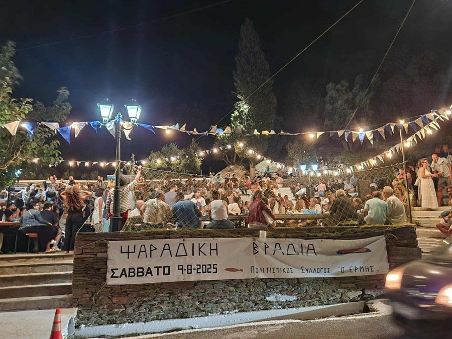Κάθε χρόνο δίνεται ραντεβού στον πολύ όμορφο αμφιθεατρικό χώρο της Παλαιόπολης για τη διοργάνωση της καθιερωμένης ψαράδικης βραδιάς. Αψηφώντας τα μποφόρ το Σάββατο βράδυ, η ορχήστρα πλημμύρισε τον τόπο με νησιώτικους σκοπούς που ξεσήκωσαν μικρούς και μεγάλους.