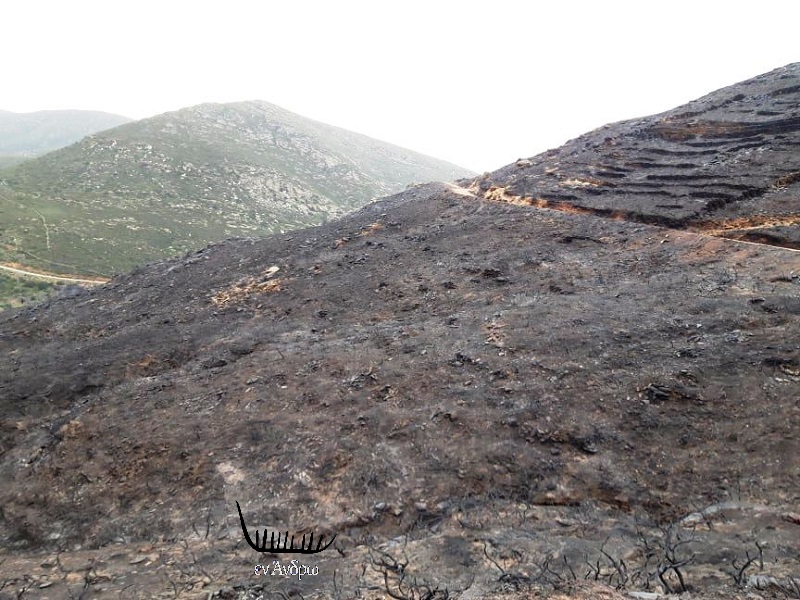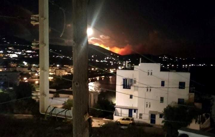 Η φωτιά στην Τήνο όταν είχε πάρει διαστάσεις.
