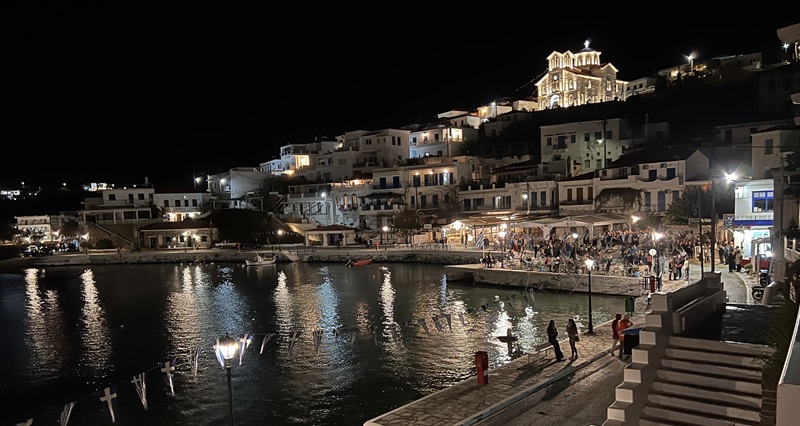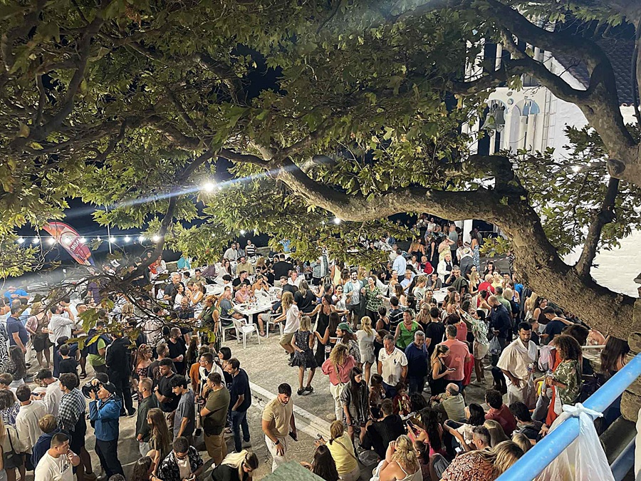 Γύρω στα 3.000 άτομα ανέβηκαν στο μεγαλύτερο πανηγύρι της Άνδρου στην ορεινή Άρνη. Τα αυτοκίνητά έφταναν χιλιόμετρα έξω από το χωριό απλωνόμενα σε 3 δρόμους. Φωτογραφία πριν ξεκινήσει ο χορός και τα τραγούδια.