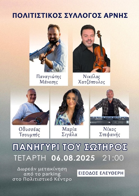 Το Σάββατο 9/8 στις 9 το βράδυ ο Πολιτιστικός Σύλλογος “Ο ΕΡΜΗΣ” της Παλαιόπολης διοργανώνει, όπως κάθε χρόνο, την ΨΑΡΑΔΙΚΗ ΒΡΑΔΙΑ στο ανοιχτό θέατρο του χωριού στον προαύλιο χώρο του Μουσείου Παλαιόπολης.