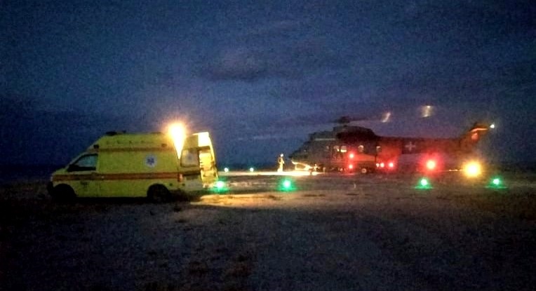 Φωτογραφία από την αποψινή αεροδιακομιδή. Το ΕΚΑΒ μεταφέρει την ασθενή στο ελικόπτερο. Απόψε Σάββατο 16/10/21 είχαμε την πρώτη νυχτερινή πτήση από το ελικοδρόμιο Χώρας μετά την εγκατάσταση του νέου φωτισμού και του νέου ραδιοσήματος. Ηλικιωμένη γυναίκα (70 περίπου ετών) από την περιοχή Πίσω Μεριάς Κορθίου με καρδιακό πρόβλημα χρειάστηκε να μεταφερθεί με ελικόπτερο της στρατιωτικής… Continue reading Νυχτερινή διακομιδή από το νεοφωτισμένο ελικοδρόμιο…