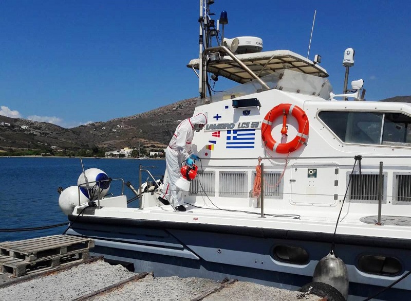 Απολύμανση του σκάφους του λιμενικού από την εξειδικευμένη εταιρεία στο Γαύριο. Και 5η διακομιδή σήμερα από Άνδρο για Ραφήνα. Αυτή τη φορά ήταν 25χρόνος ασθενής με covid-19! Ο ασθενής δεν ήταν εμβολιασμένος. Το σκάφος του λιμενικού έφυγε μεσημέρι της Δευτέρας από Γαύριο κι επιστρέφει απόψε αργά το απόγευμα.