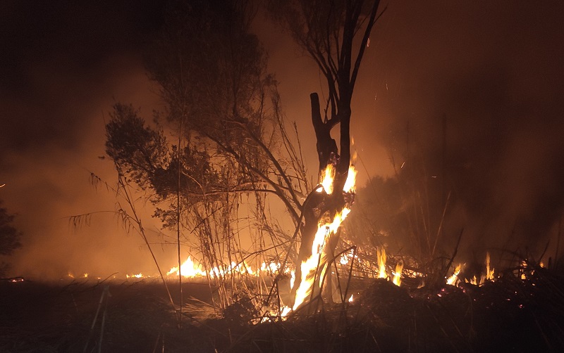 Από την φωτιά στον Όρμο Μεγάλη φωτιά στη ρεματιά με τις καλαμιές πίσω από το βενζινάδικο και τα σπίτια στον Όρμο Κορθίου. Επί τόπου 5 οχήματα της πυροσβεστικής με 14 πυροσβέστες, 3 του ΣΕΔΑ με 7 δασοπυροσβέστες, μια υδροφόρα μαζί με την πολιτική προστασία του Δήμου.